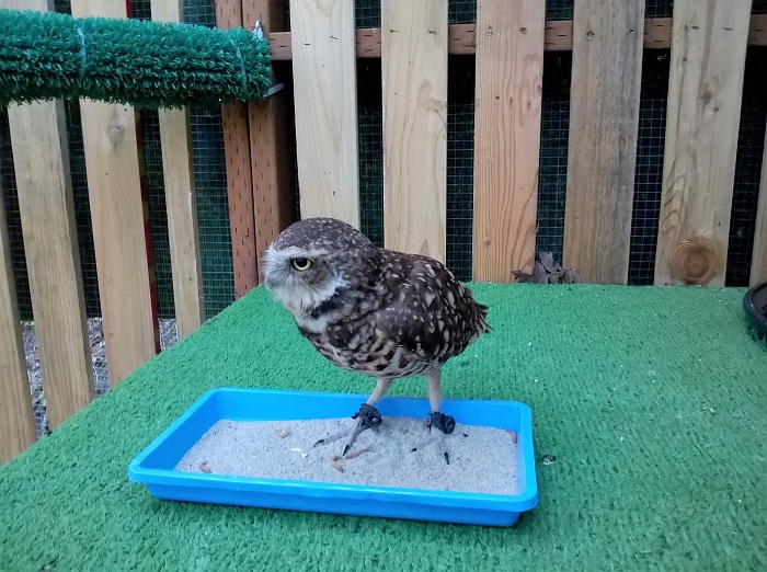 The projects rehabilitation facility receives around 200 birds each year, mostly raptors, from collisions with vehicles, nest disturbance, window strikes, barbed wire, electrocution, etc. On the nature center side, some 60 non-releasable permanent resident birds.