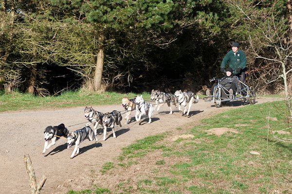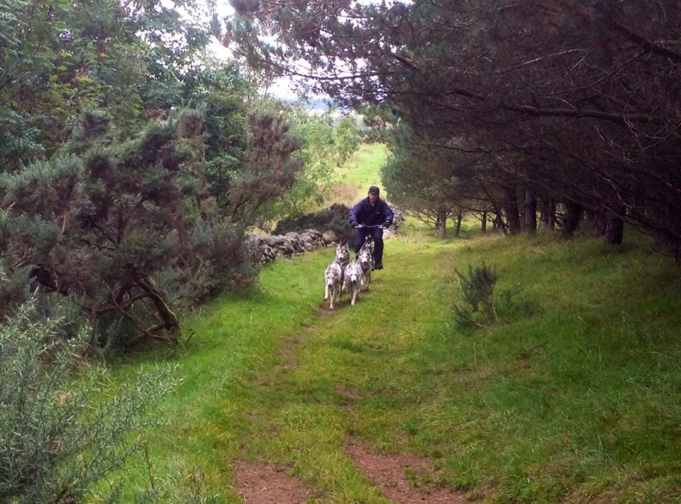 Our Husky Ranch Scotland project is a large kennel comprising of approximately 50 Sprint racing Siberian Huskies, other domestic animals and livestock. The owners of the Ranch are both very successful at racing large teams in Dryland Competition and they also enjoy racing on snow at international Championship level. One of the founders is on the board of the World Sleddog Association as director of Dryland racing and is involved in organising races internationally. They also provide husky rides for members of the public, usually running three teams per day, approx. 5 or 6 miles per team, with passengers, up to 5 days per week. Apart from their passenger rides, they also train their dogs for racing, and will undertake training without passengers to work on speed training.