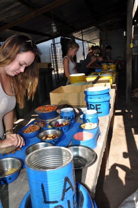 Volunteers will be placed in the project’s volunteer village. There are several wooden cabins, communal showers, toilet facilities, and a bar/eating area where you will have all your meals. There is also a small swimming pool. You will share a cabin with up to three other volunteers of the same gender. Bed linen is provided as well as a towel. You will have a shelving unit for your clothes and other stuff. Toilet and showering facilities are located in the middle of the cabin area! - Meals